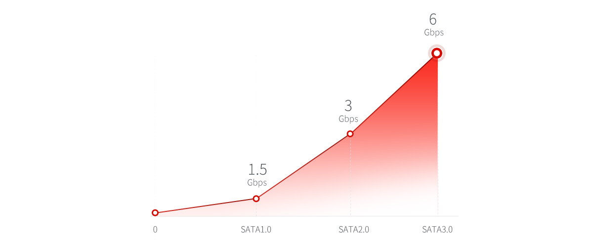 配合SATA3.0硬盤,可支持高達6Gbps的理論速度,并向下兼容SATA1.0/SATA2.0,為您的大容量存儲設備之間的數據交互提供快速傳輸性能。