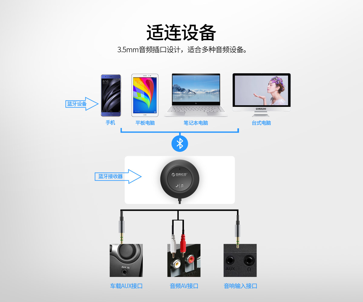 藍(lán)牙接收器,10m遠(yuǎn)距離傳輸,藍(lán)牙4.1版本,3.5mm音頻接口,高保真音質(zhì)