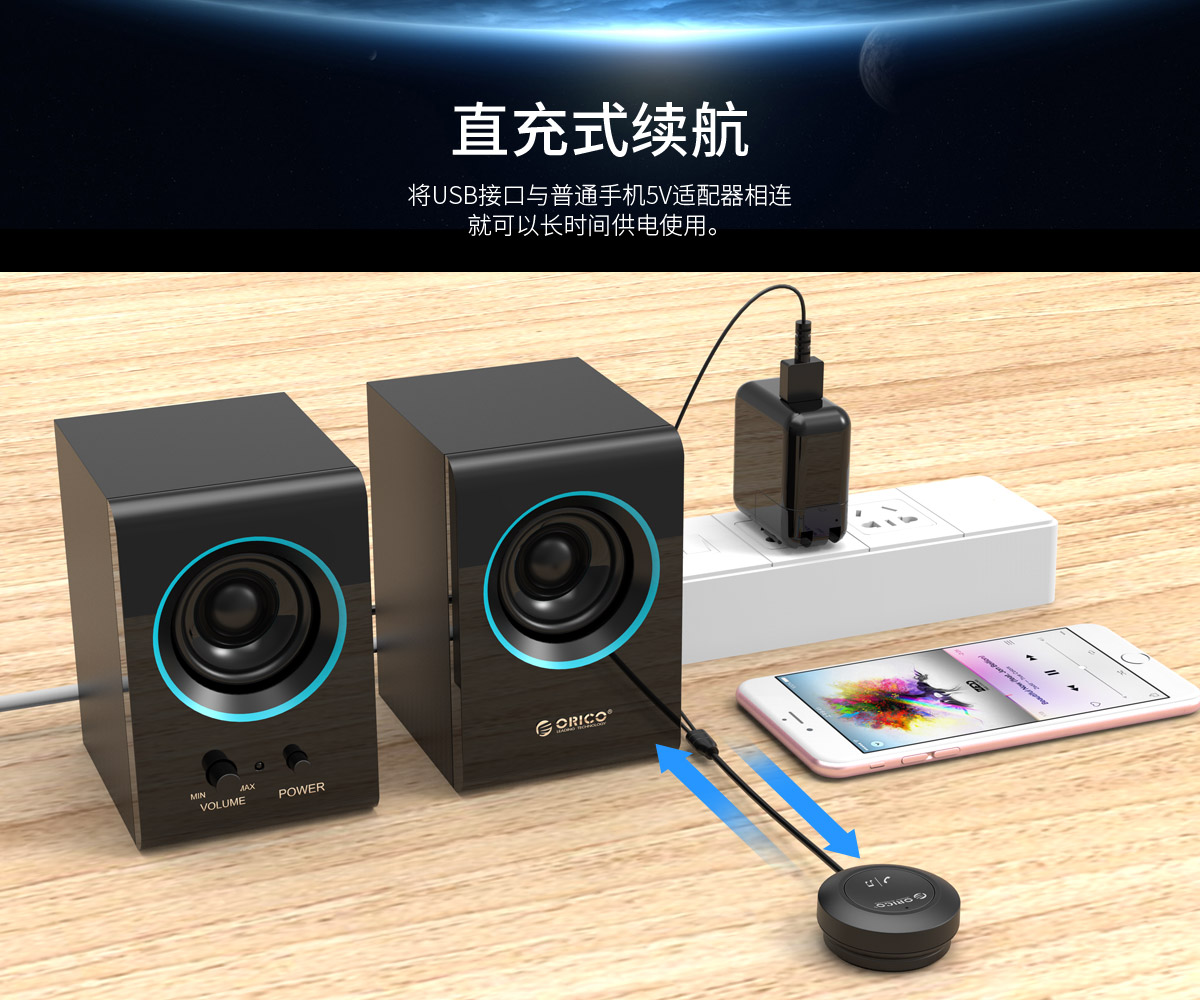 藍(lán)牙無線音頻接收器,直充式續(xù)航