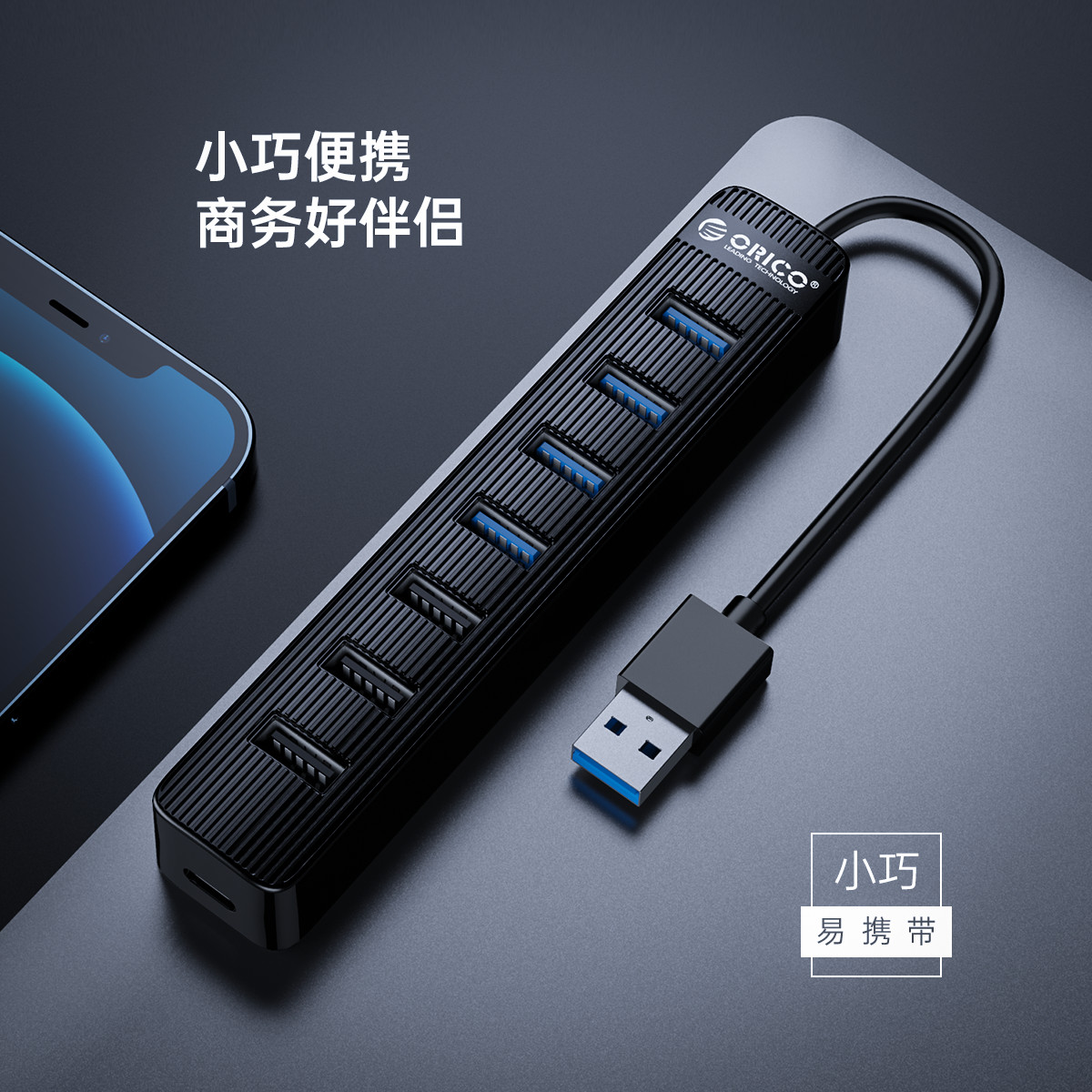 4個USB3.0+3個USB2.0接口,預留10W Type C供電口,可外接電源,防倒流設計