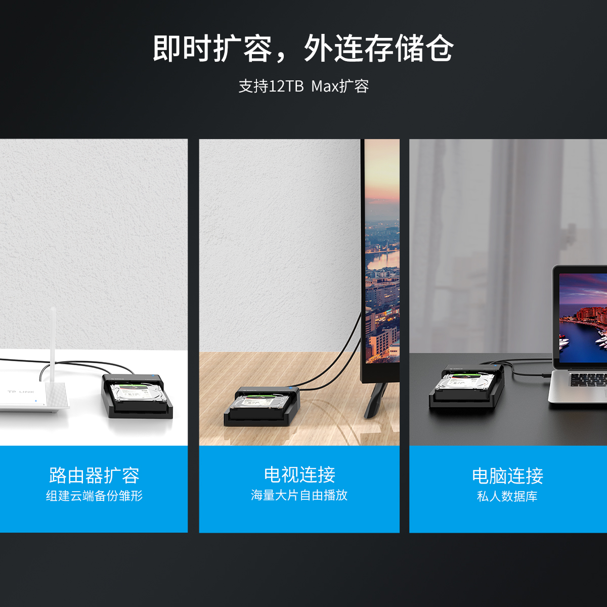 10Gbps理論速率,支持12TB擴容,機械、固態(tài)通用、開放式散熱