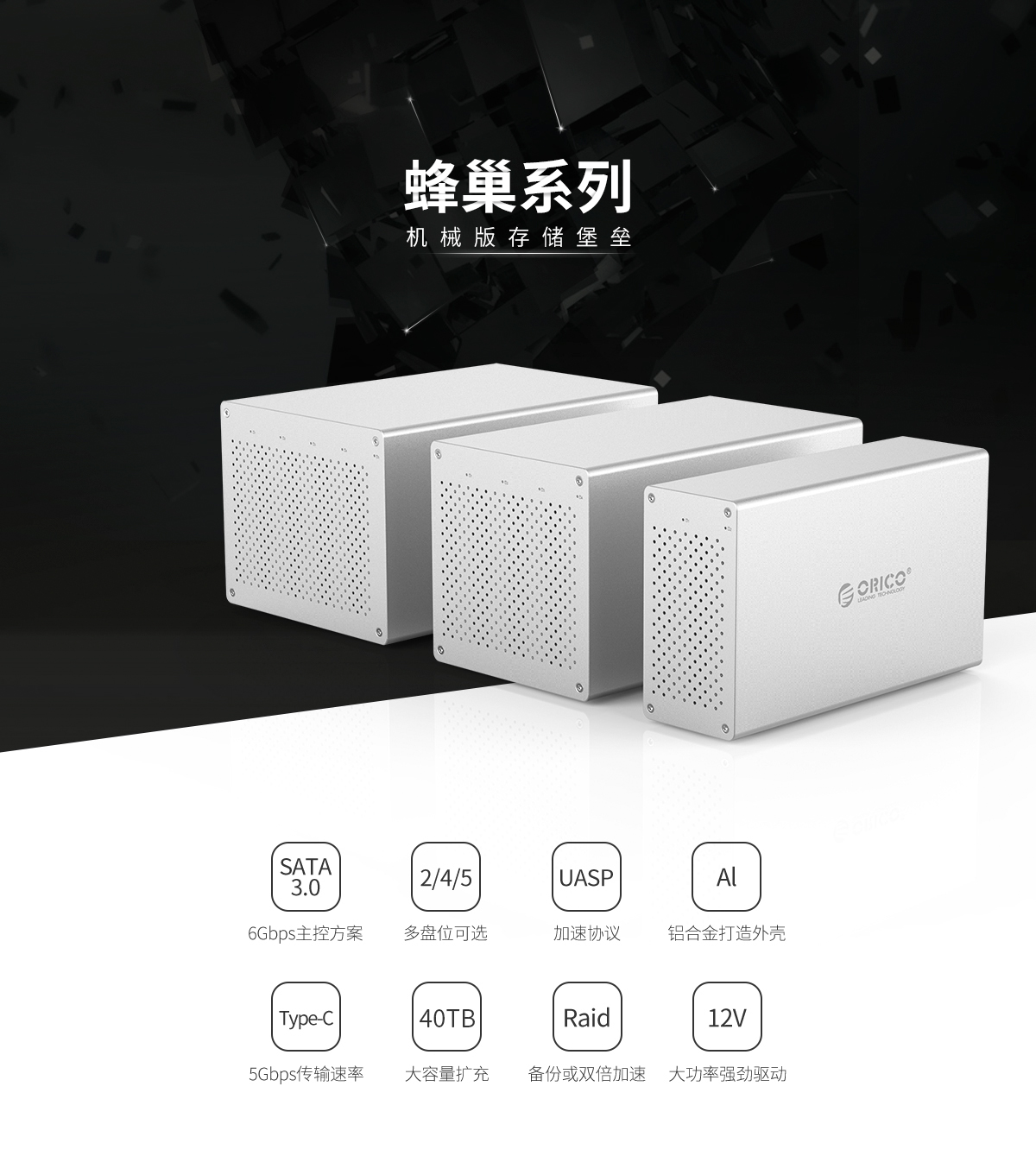 支持40TB容量,支持UASP加速協議,蜂窩式對流散熱,支持智能休眠