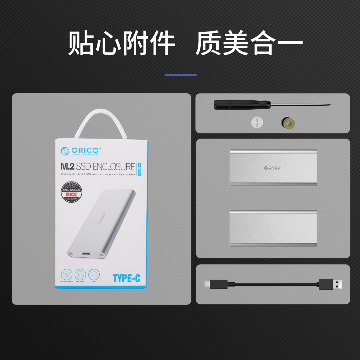 M.2轉Type-C鋁合金固態硬盤盒(方形)