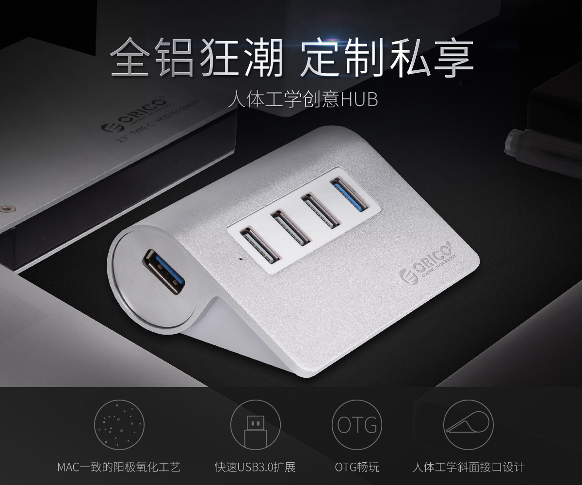 4口USB3.0高速擴展 MAC風(fēng)格 人體工學(xué)斜面設(shè)計 全鋁合金材質(zhì) RTS5411芯片