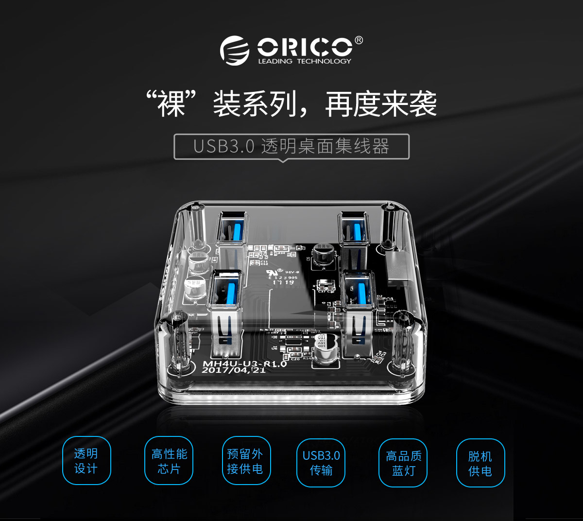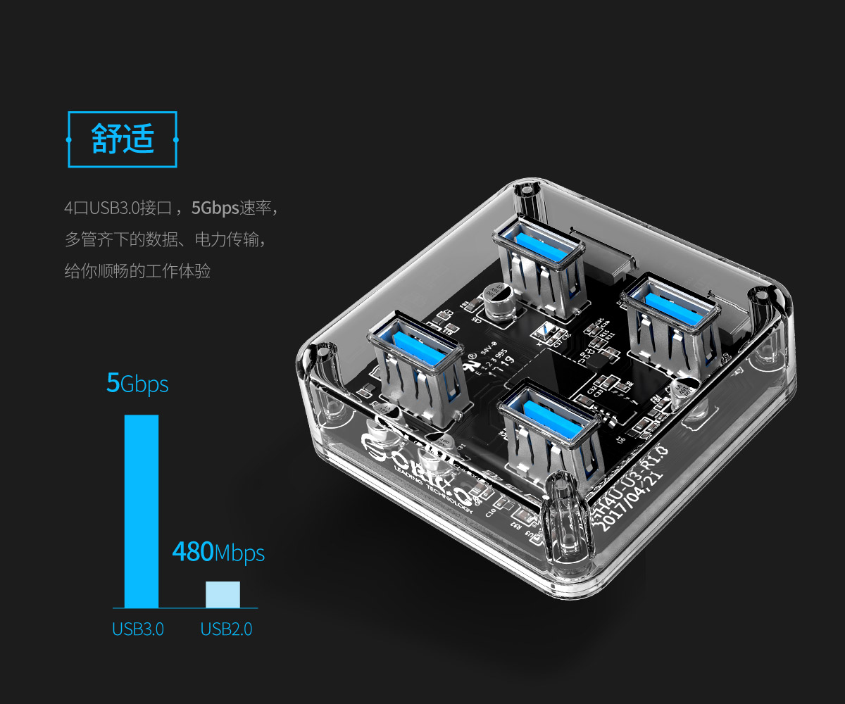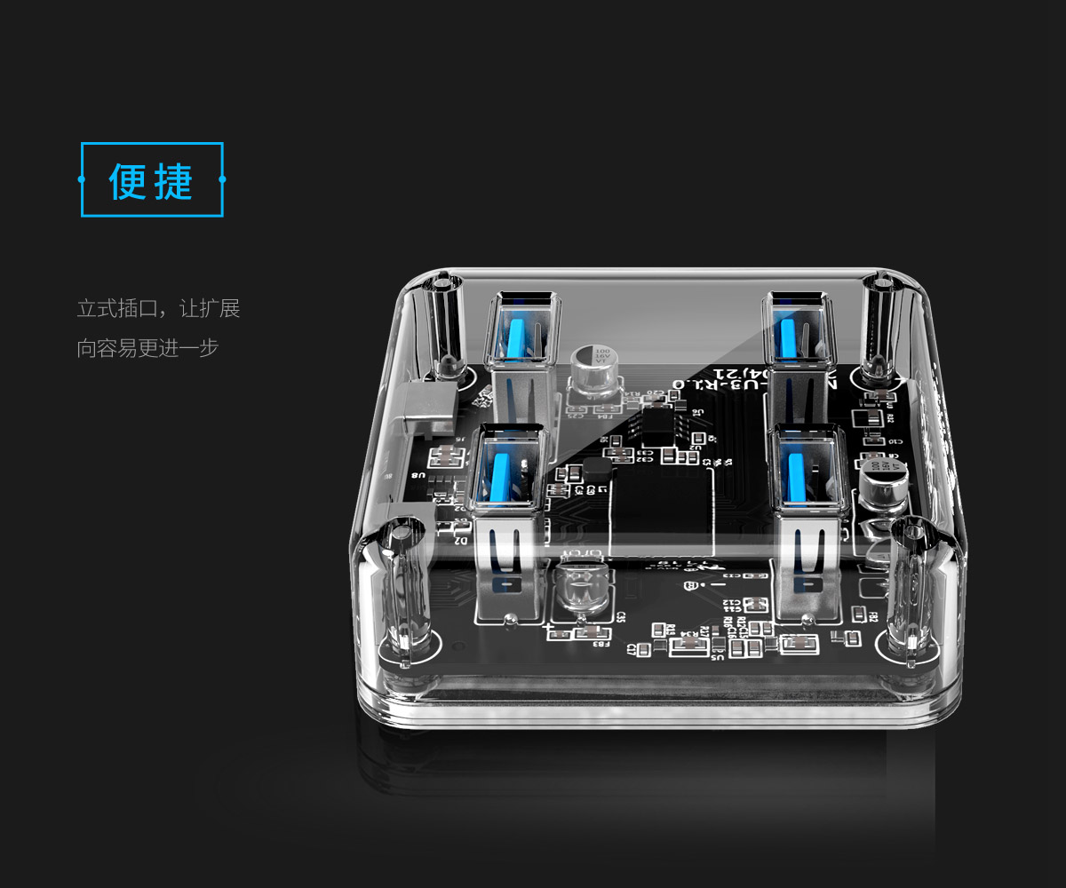 4口USB3.0透明桌面集線器