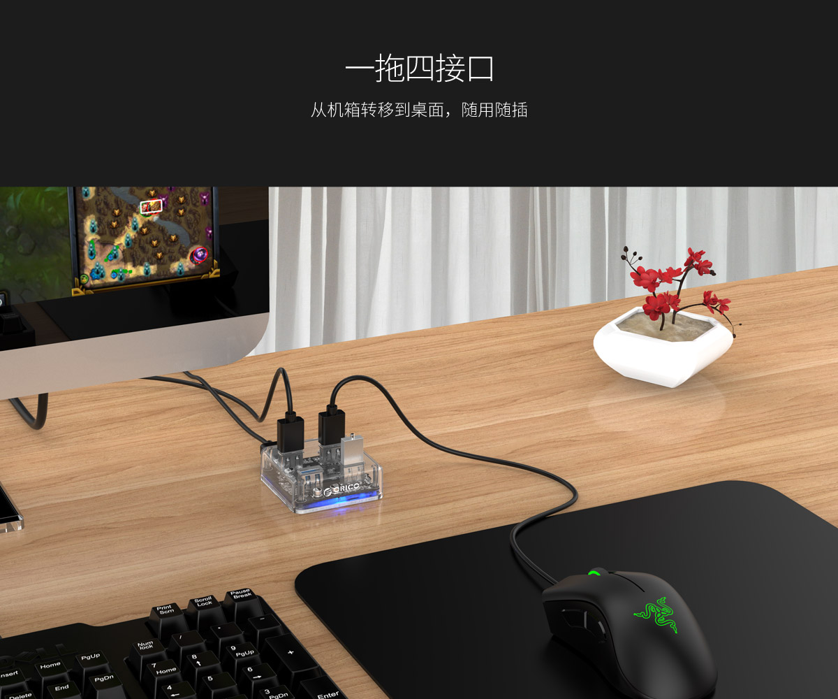 透明集線器,國際標(biāo)準(zhǔn)認(rèn)證,品質(zhì)藍(lán)燈提示,多種系統(tǒng)兼容