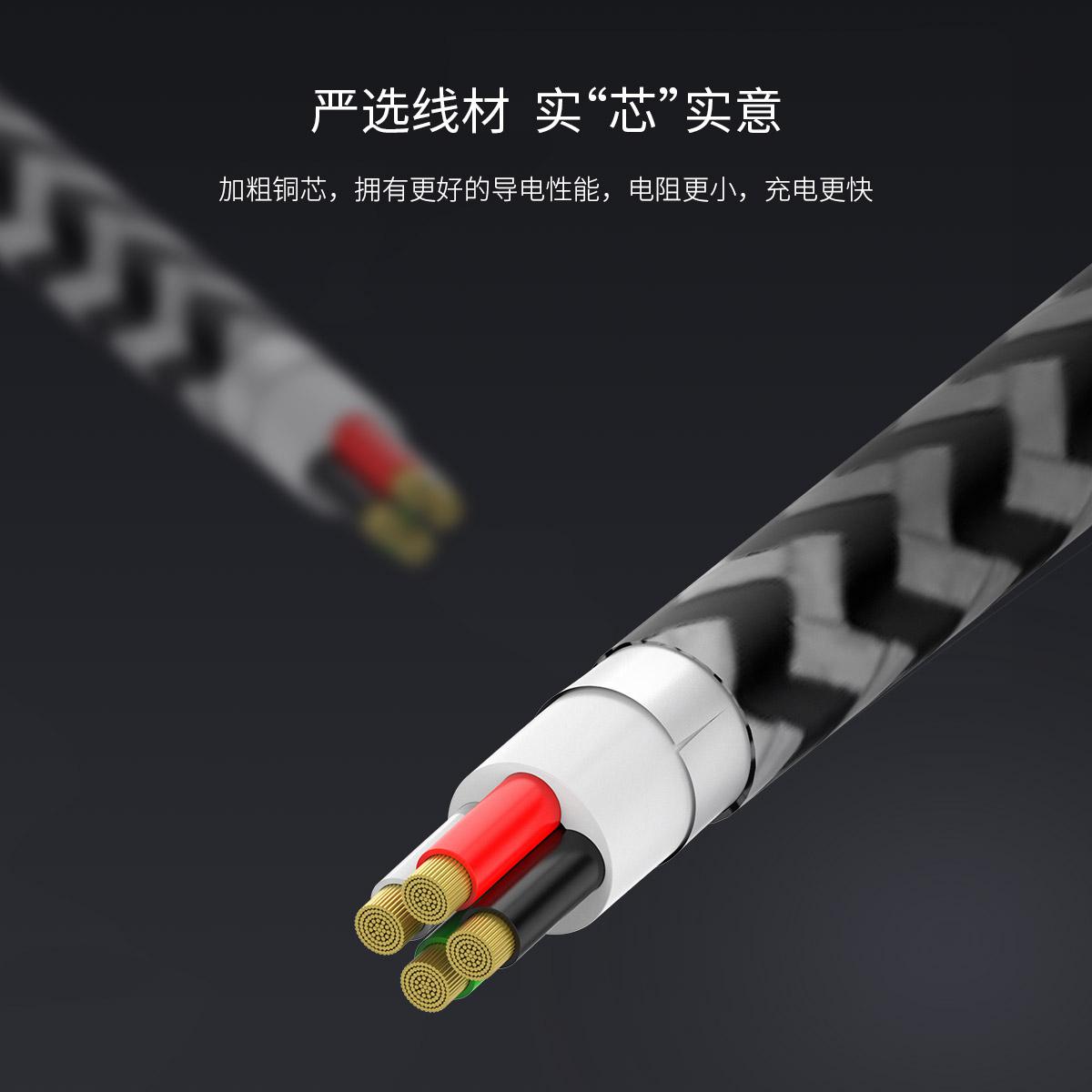 支持2.1A大電流,鋁合金外殼不發(fā)燙,加粗銅芯,電阻小,編織線身