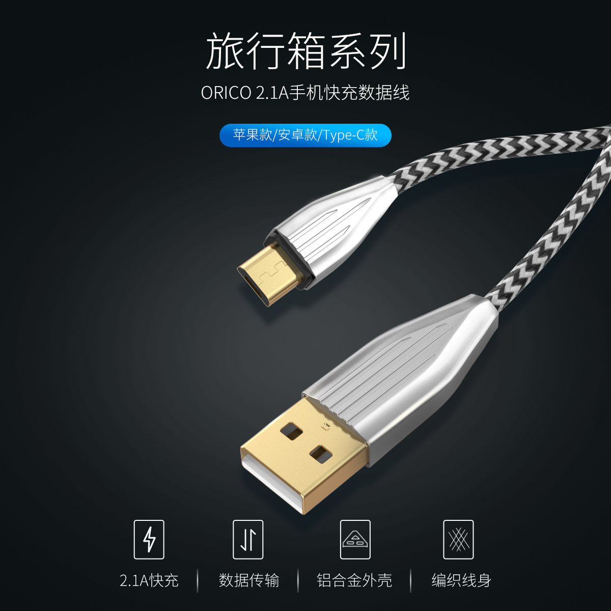 Type-A轉(zhuǎn)Micro B安卓充電數(shù)據(jù)線,旅行箱設(shè)計
