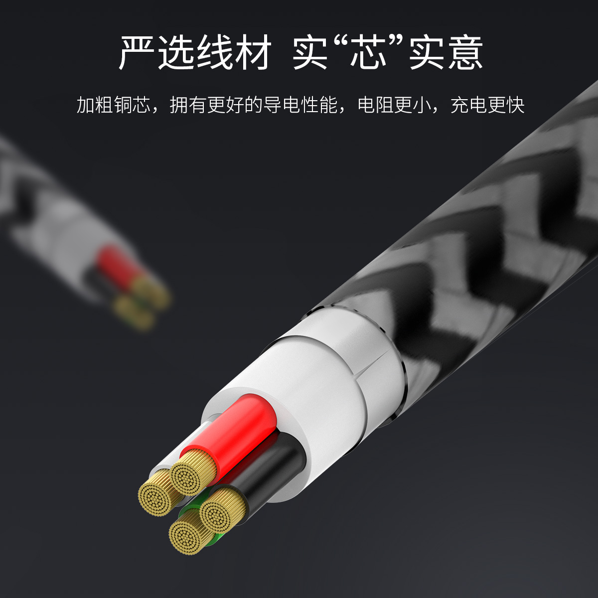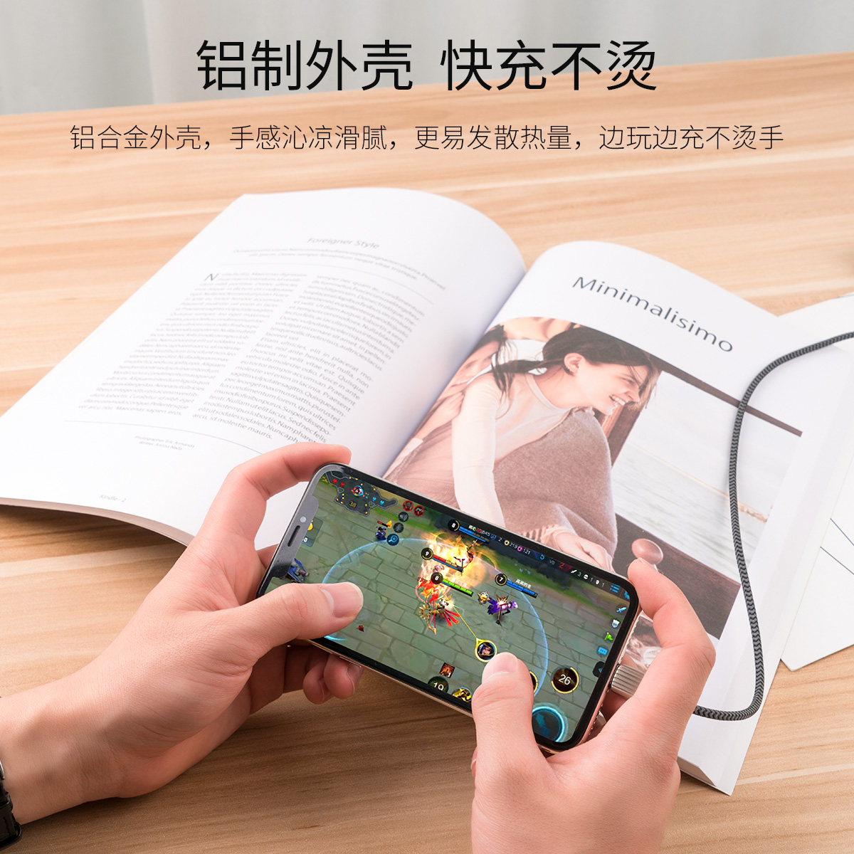 支持2.1A大電流,鋁合金外殼不發(fā)燙,加粗銅芯,電阻小,編織線身