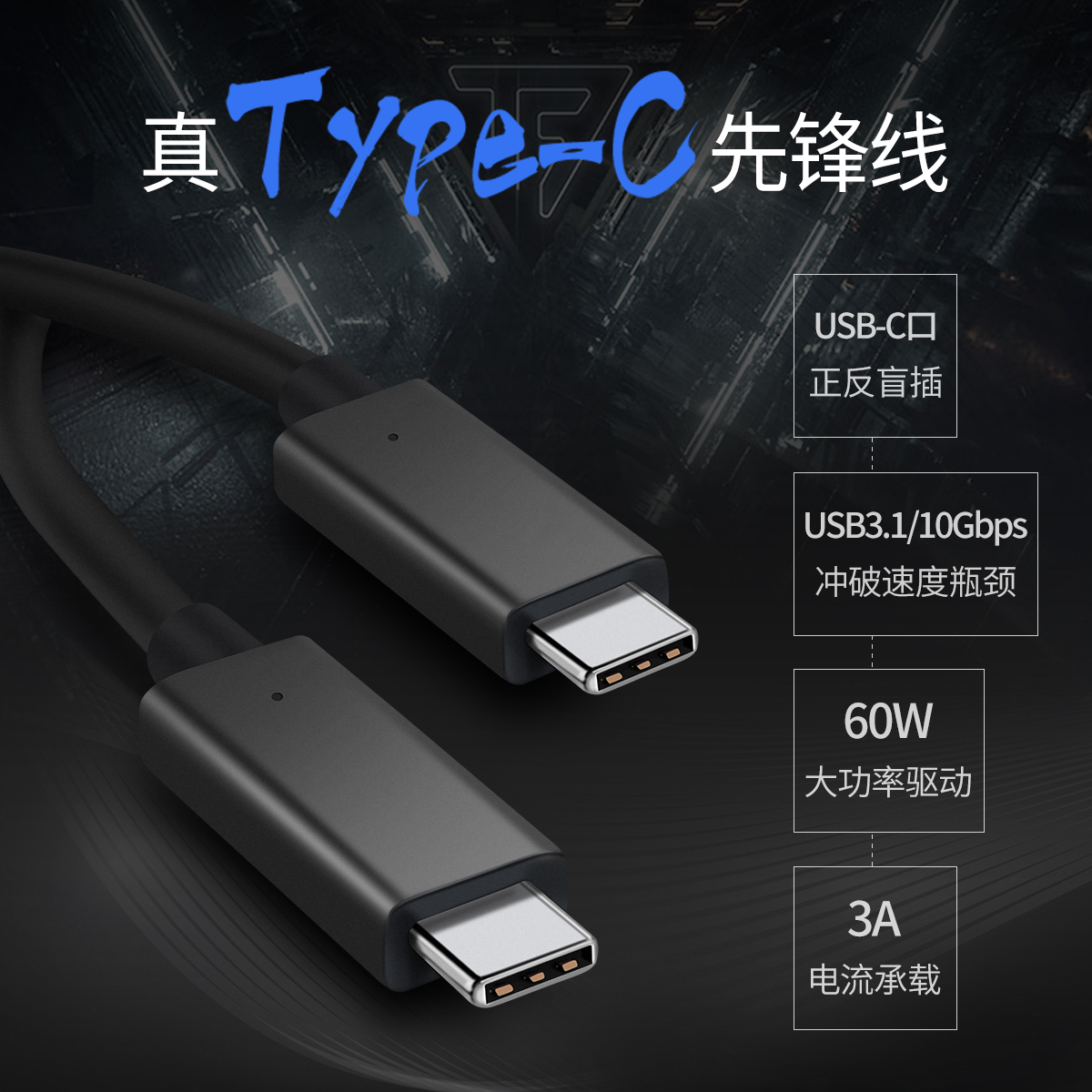 Type-C轉(zhuǎn)Type-C充電數(shù)據(jù)線(E-mark芯片加速款)