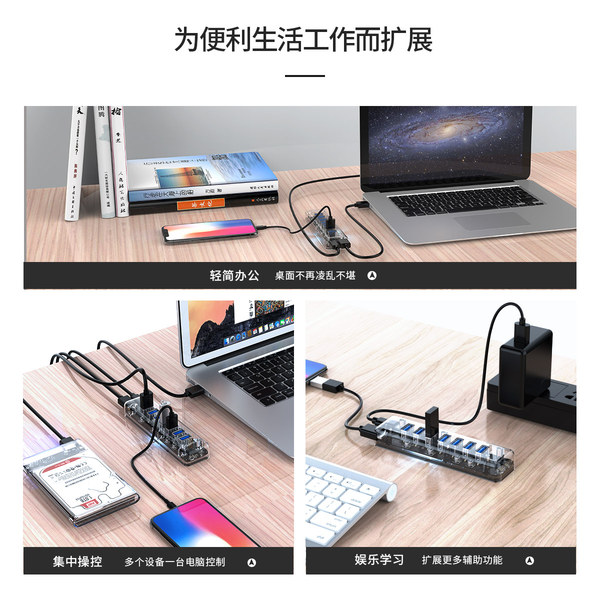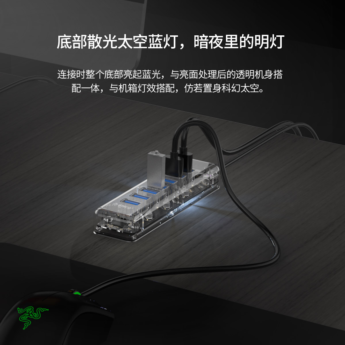 透明系列集線器 內透藍光指示燈 立式插拔設計 小巧便捷