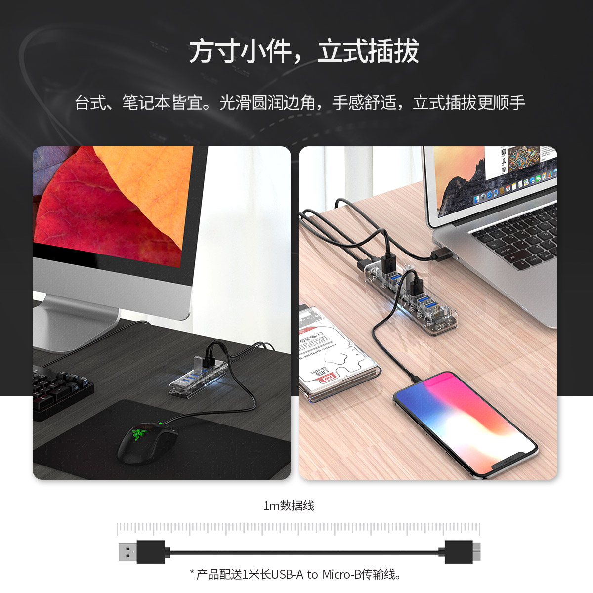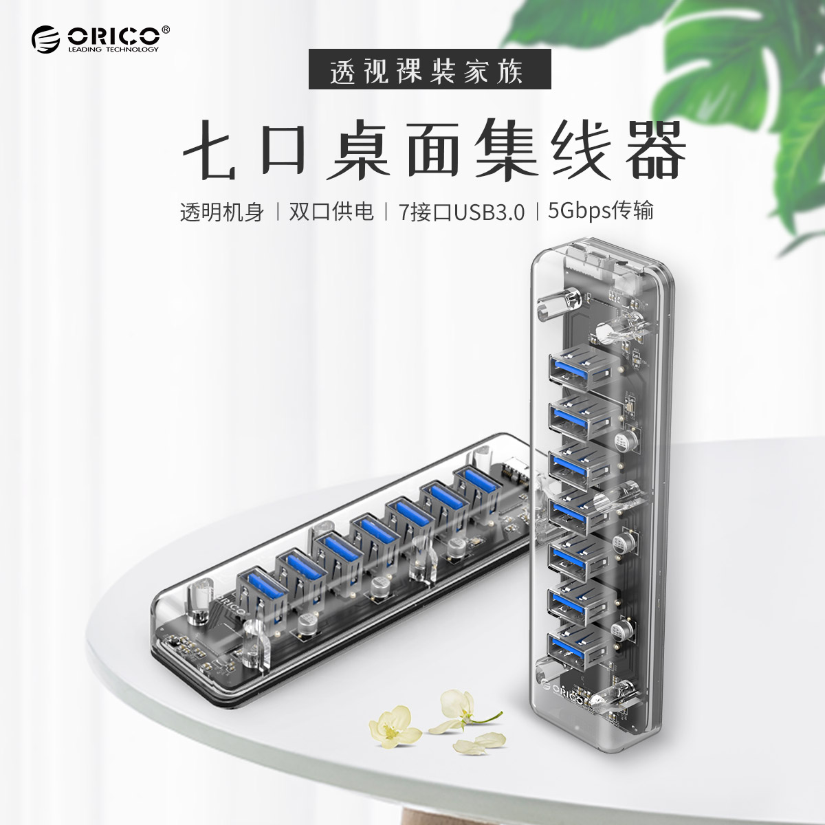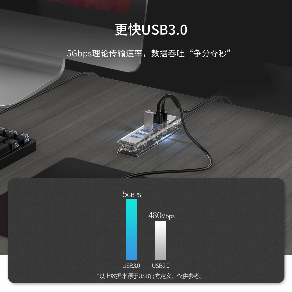 7口USB3.0透明桌面集線器,帶100cm傳輸線