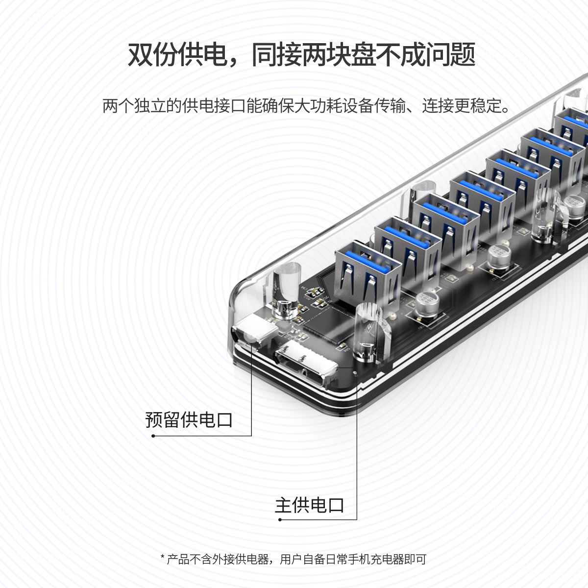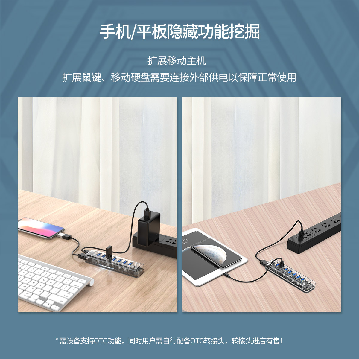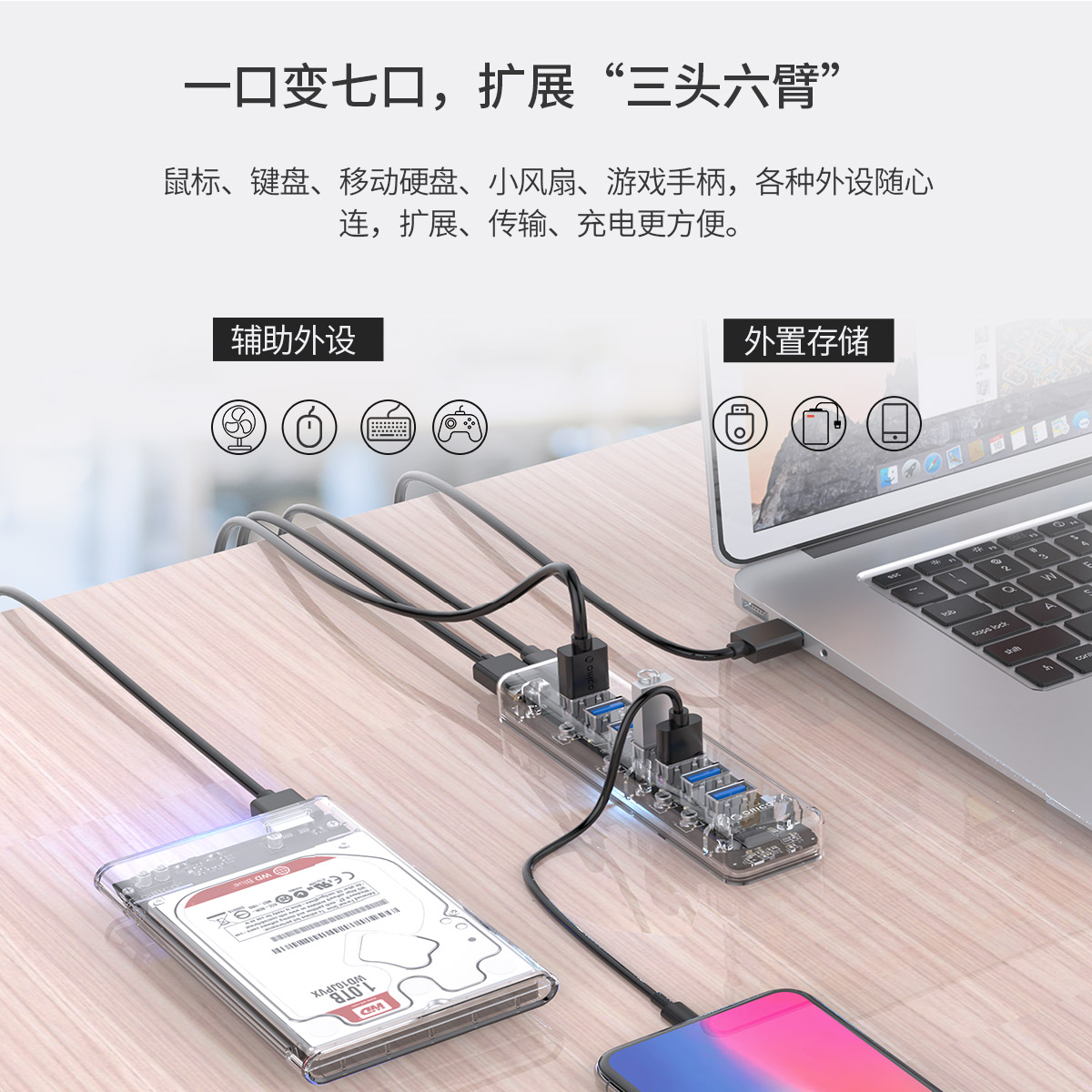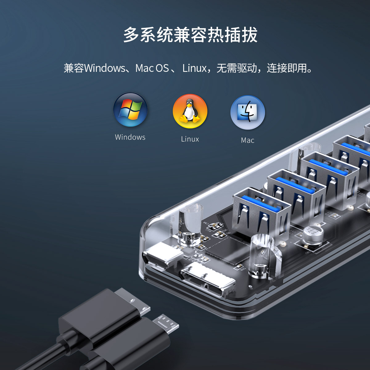 7口USB3.0透明桌面集線器,帶100cm傳輸線