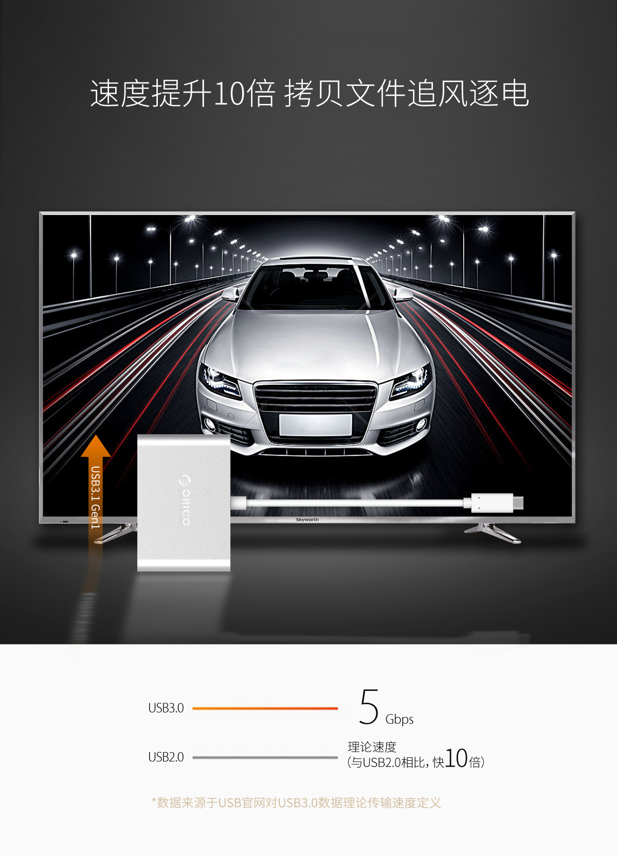 鋁合金機身 PD雙向接口 一體式數據線 藍色紅色指示燈 USB3.1 Gen1傳輸速度