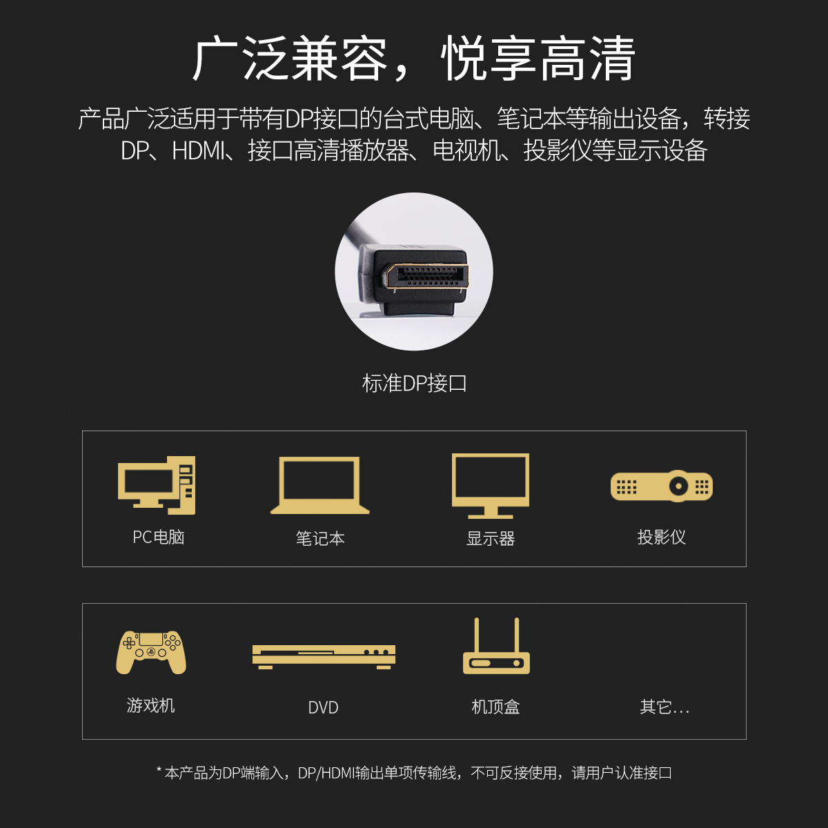 3840*2160@30Hz畫質,21.6Gbps高速帶寬,音畫同步輸出,廣泛兼容
