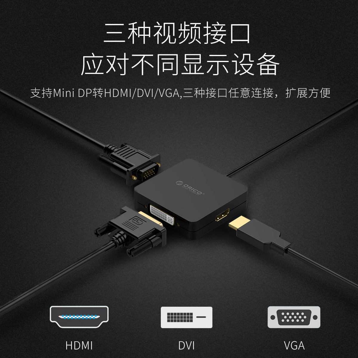 Mini DP轉HDMI/VGA/DVI公對母高清三合一視頻轉換器