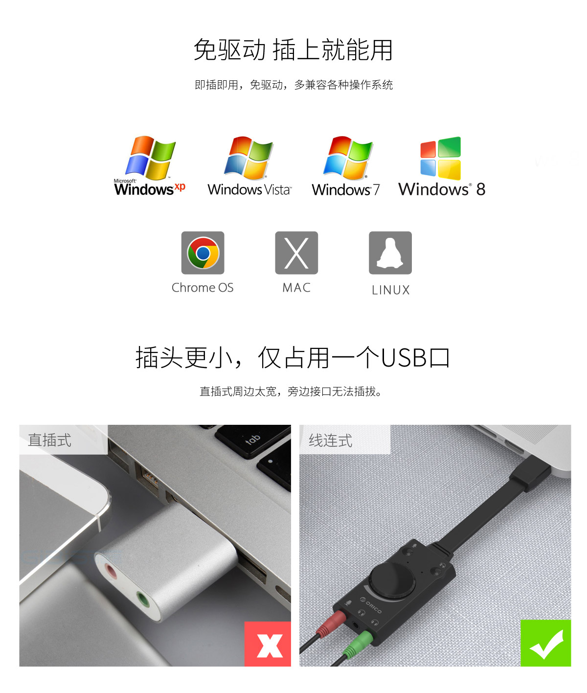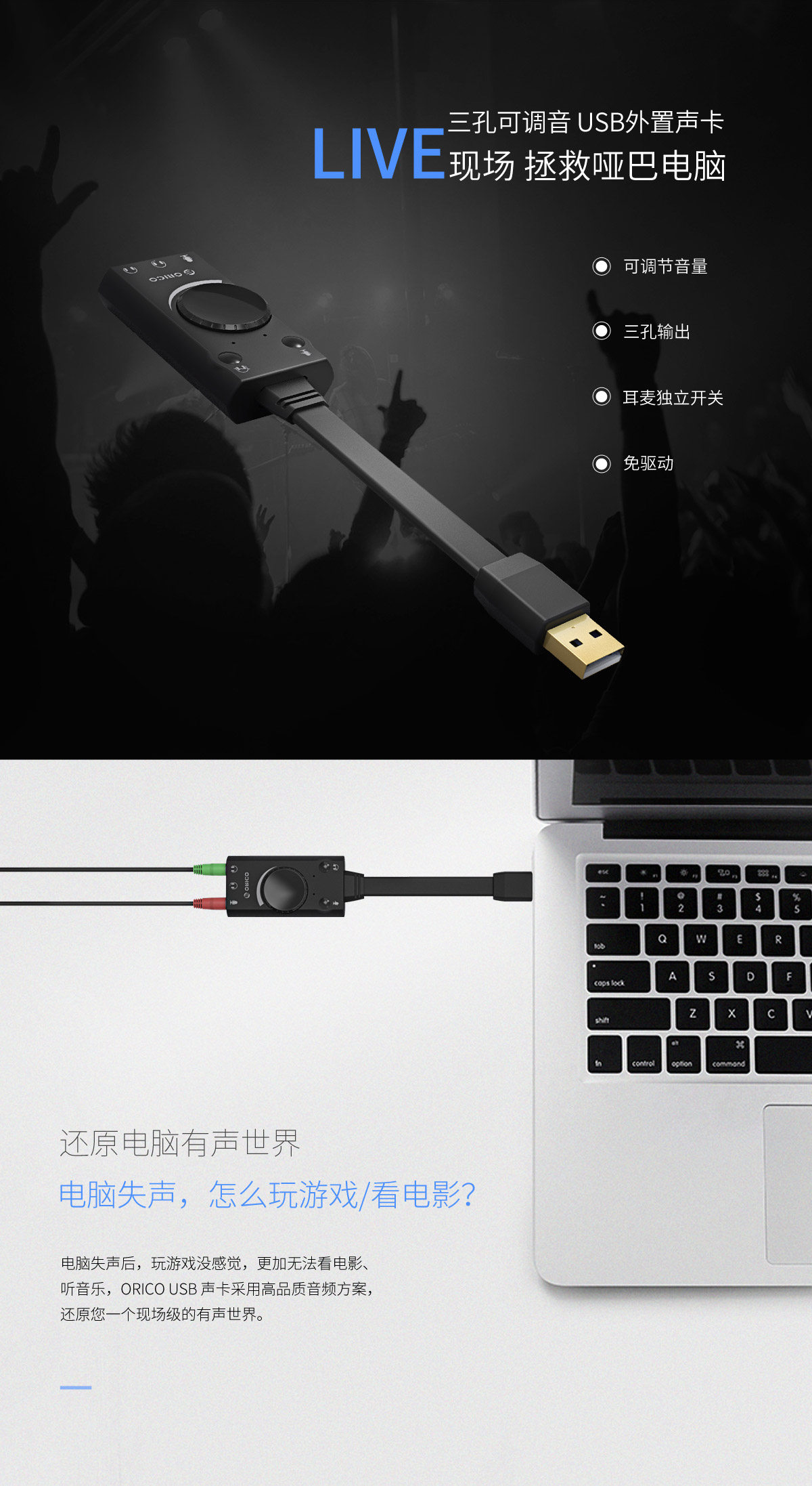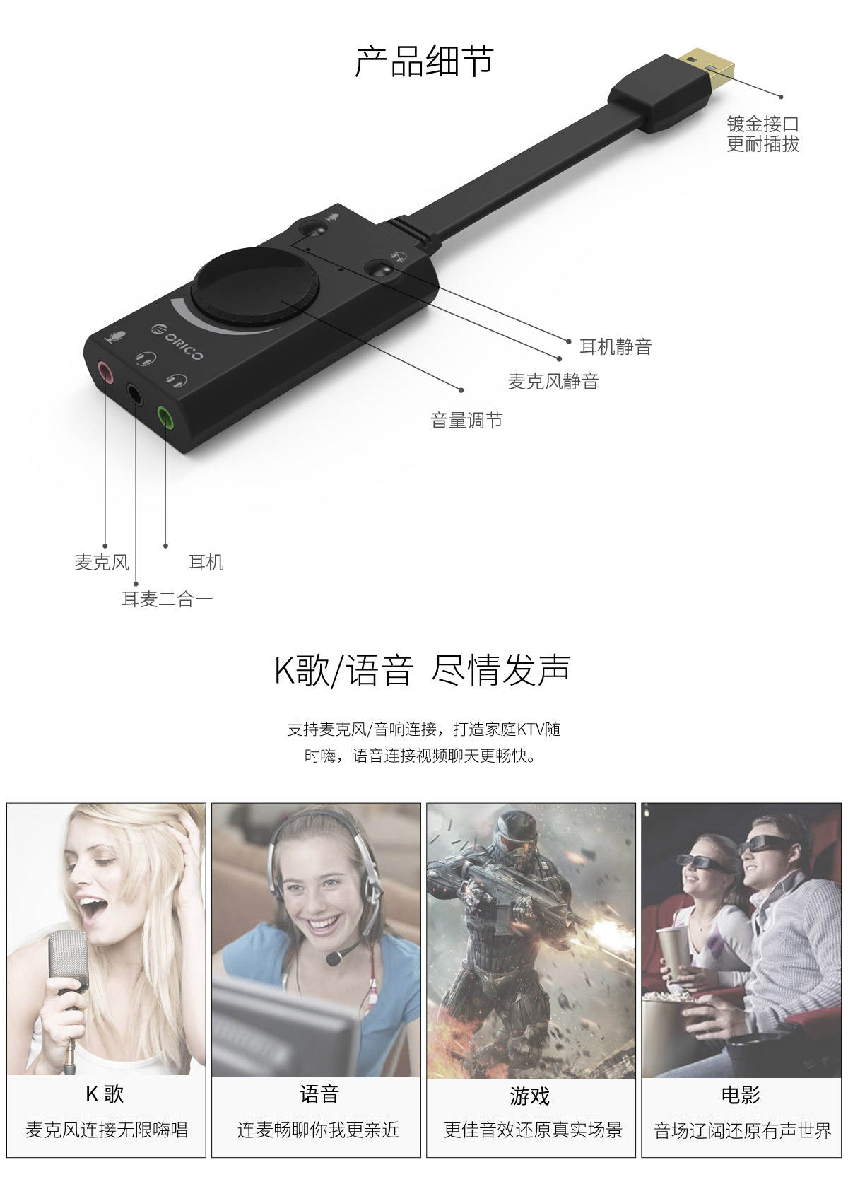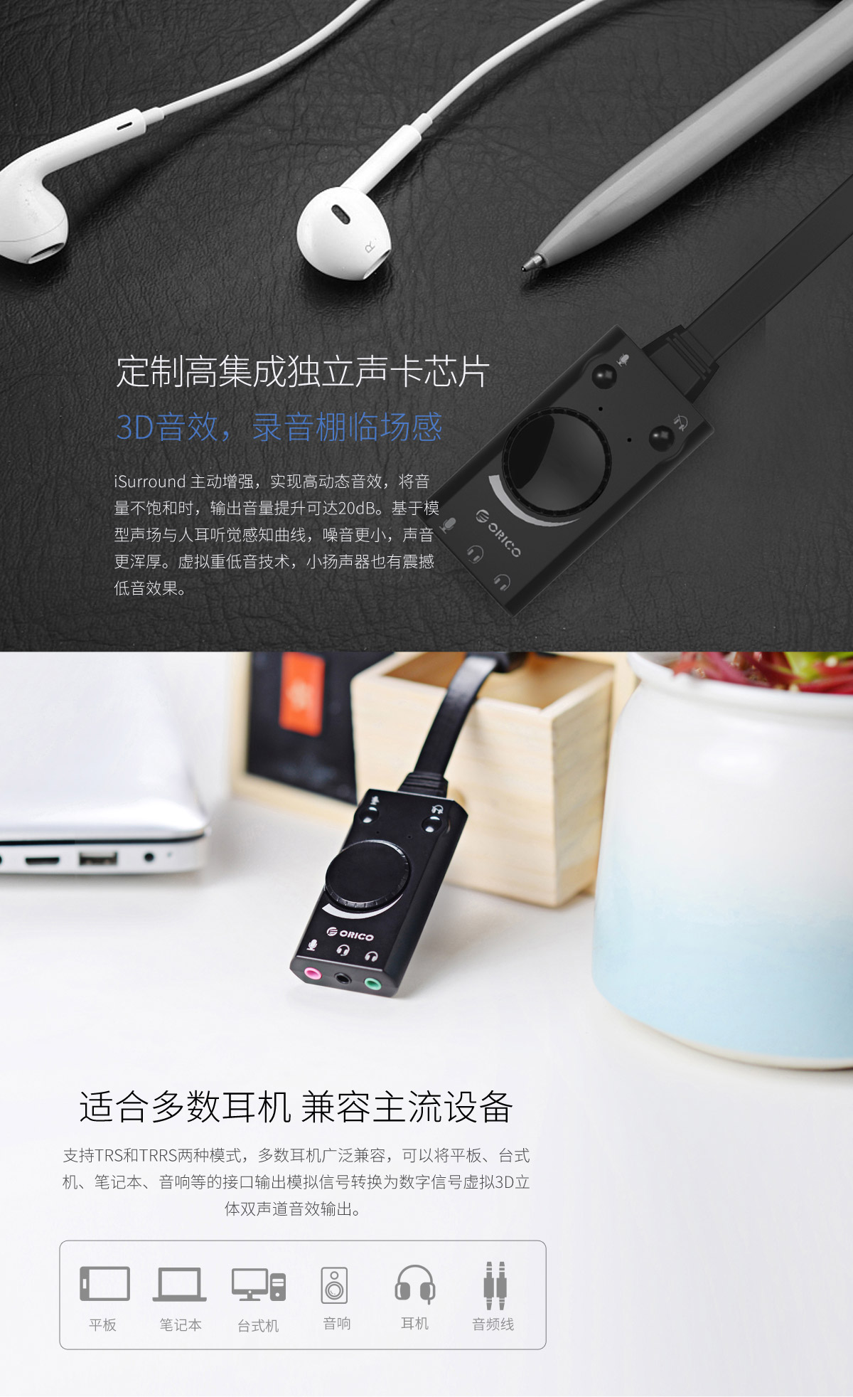 USB聲卡,3D音效,兼容主流設(shè)備